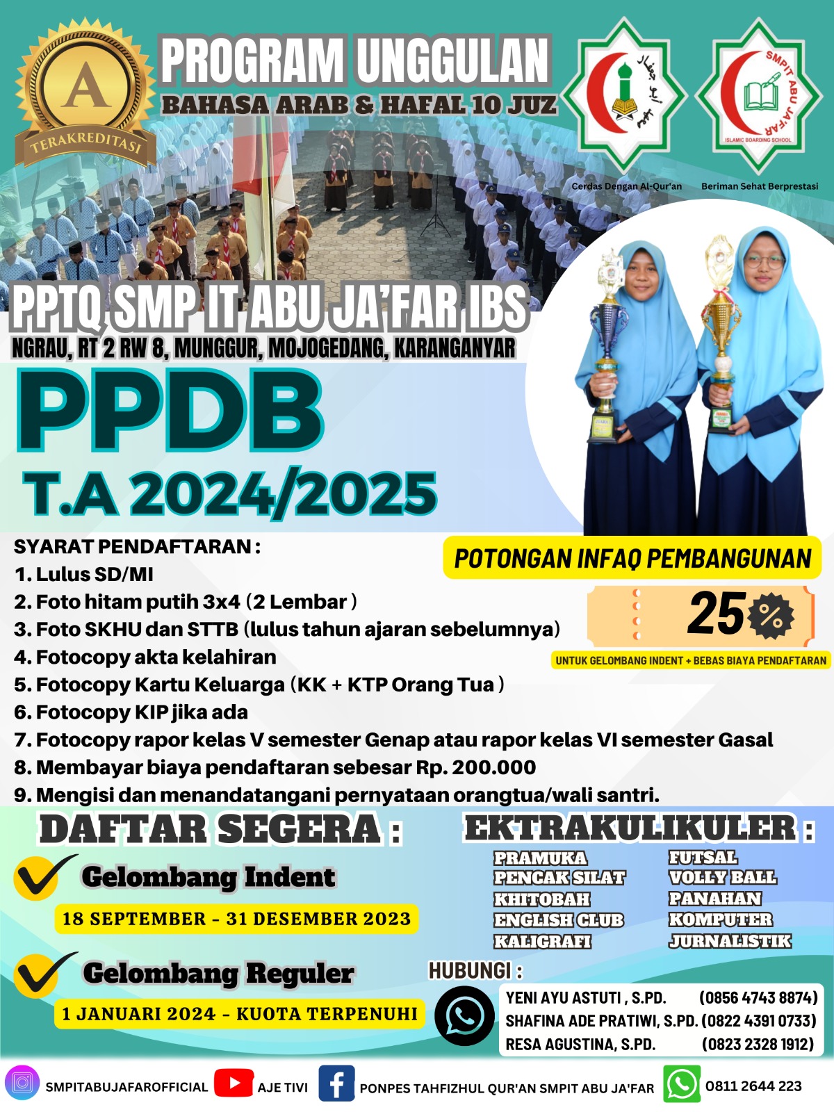 7. Santri berakhlak Islami, mandiri, disiplin dalam meraih prestasi.